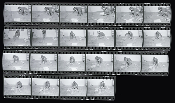 An enlarged contact sheet of me working on a model of a proposed skate park. I'm sure there must be at least another roll of these...somewhere